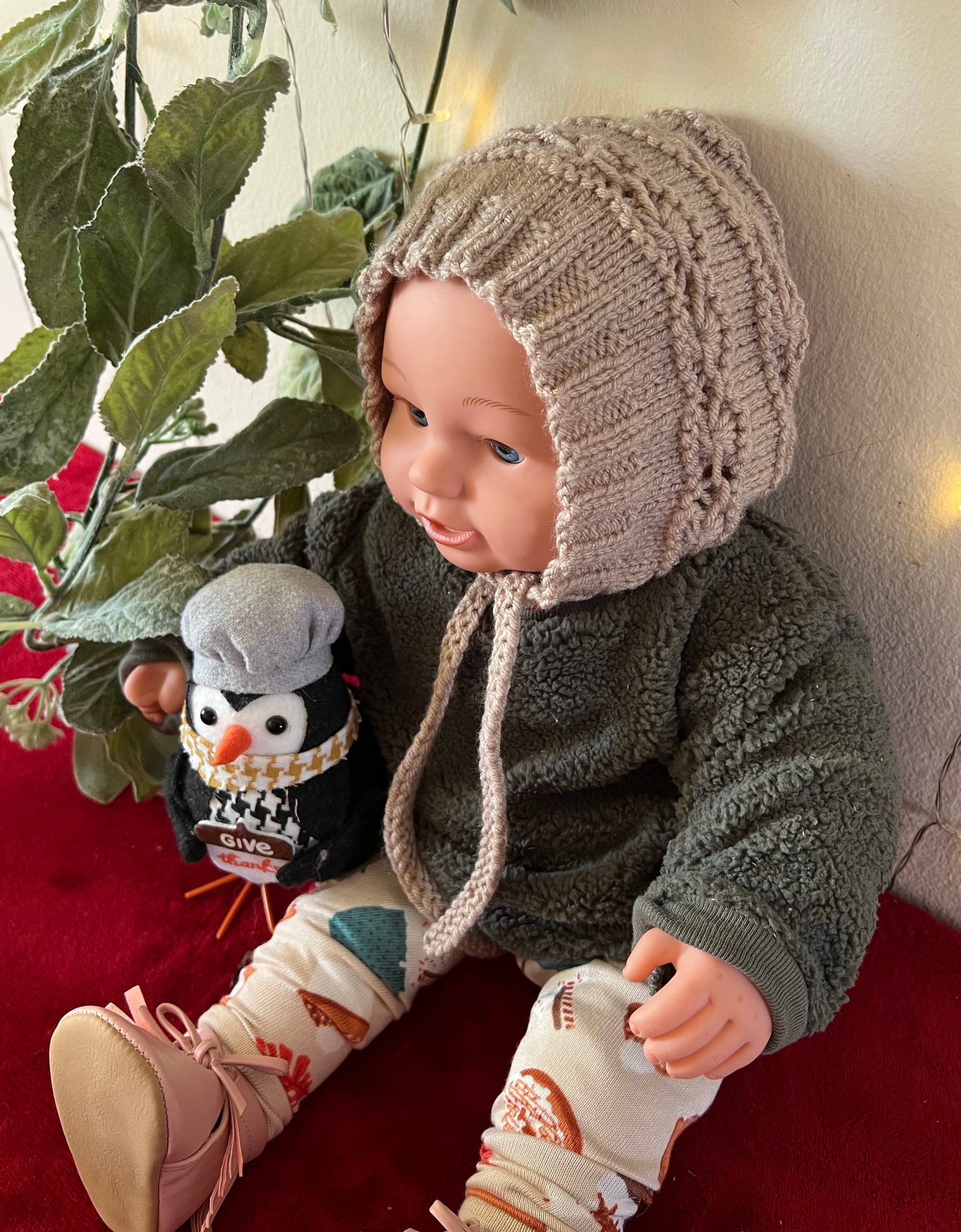 The Baby Bonnet is a must-have accessory for any new parent. Make your baby's wardrobe complete with this handmade knit bonnet that combines fashion, and function!