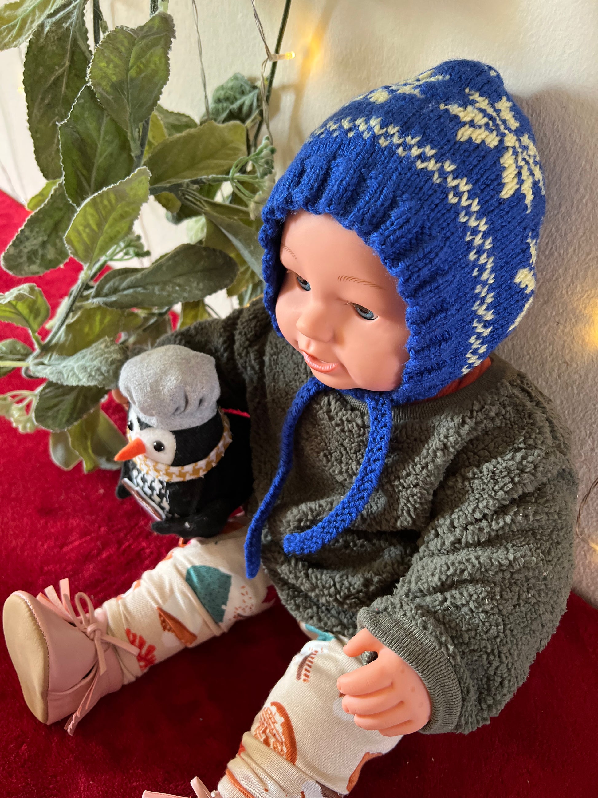 Baby Bonnet Blue Snowflake Design Hand Knit Soft Baby Yarn (12+ Months)