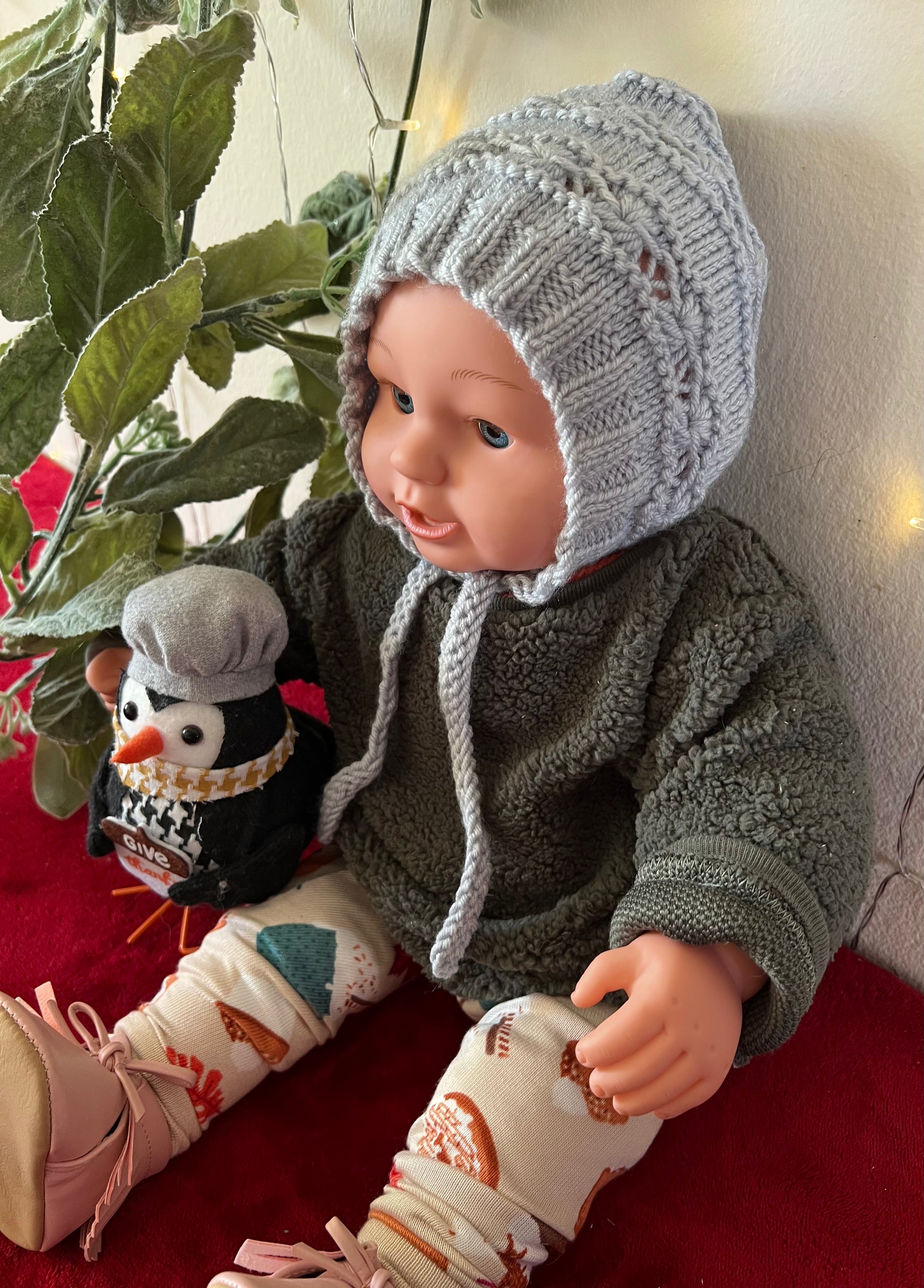 Baby Bonnet Grey Hand Knitted Soft Baby Yarn (Newborn)
