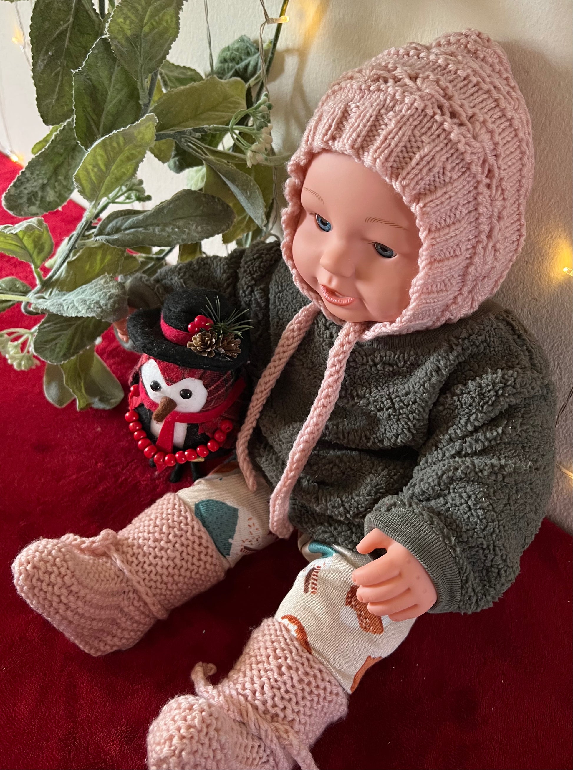 Baby Bonnet Mauve Pink Hand Knitted Soft Baby Yarn (Newborn)