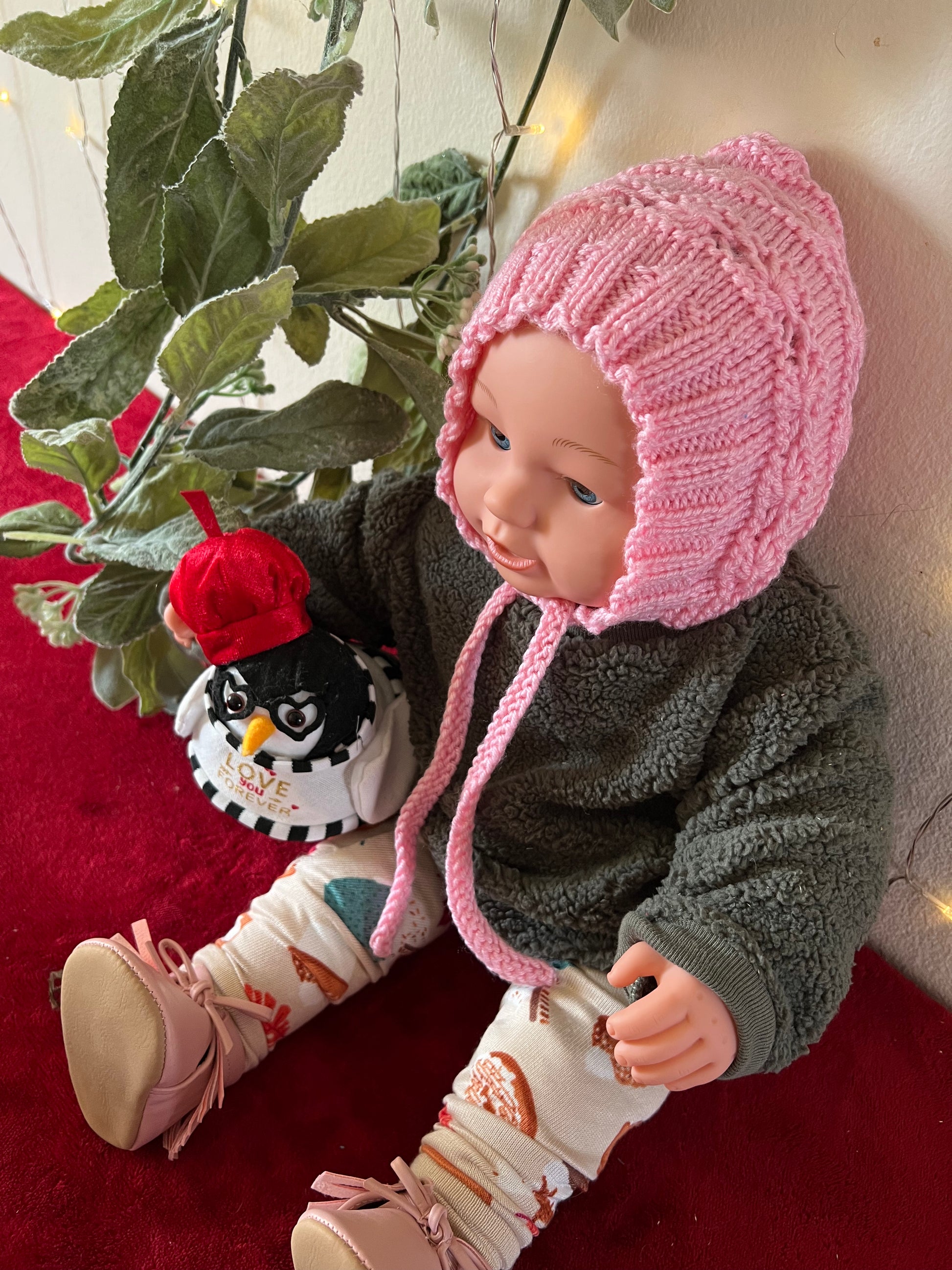 The Baby Bonnet is a must-have accessory for any new parent. Make your baby's wardrobe complete with this handmade knit bonnet that combines fashion, and function!