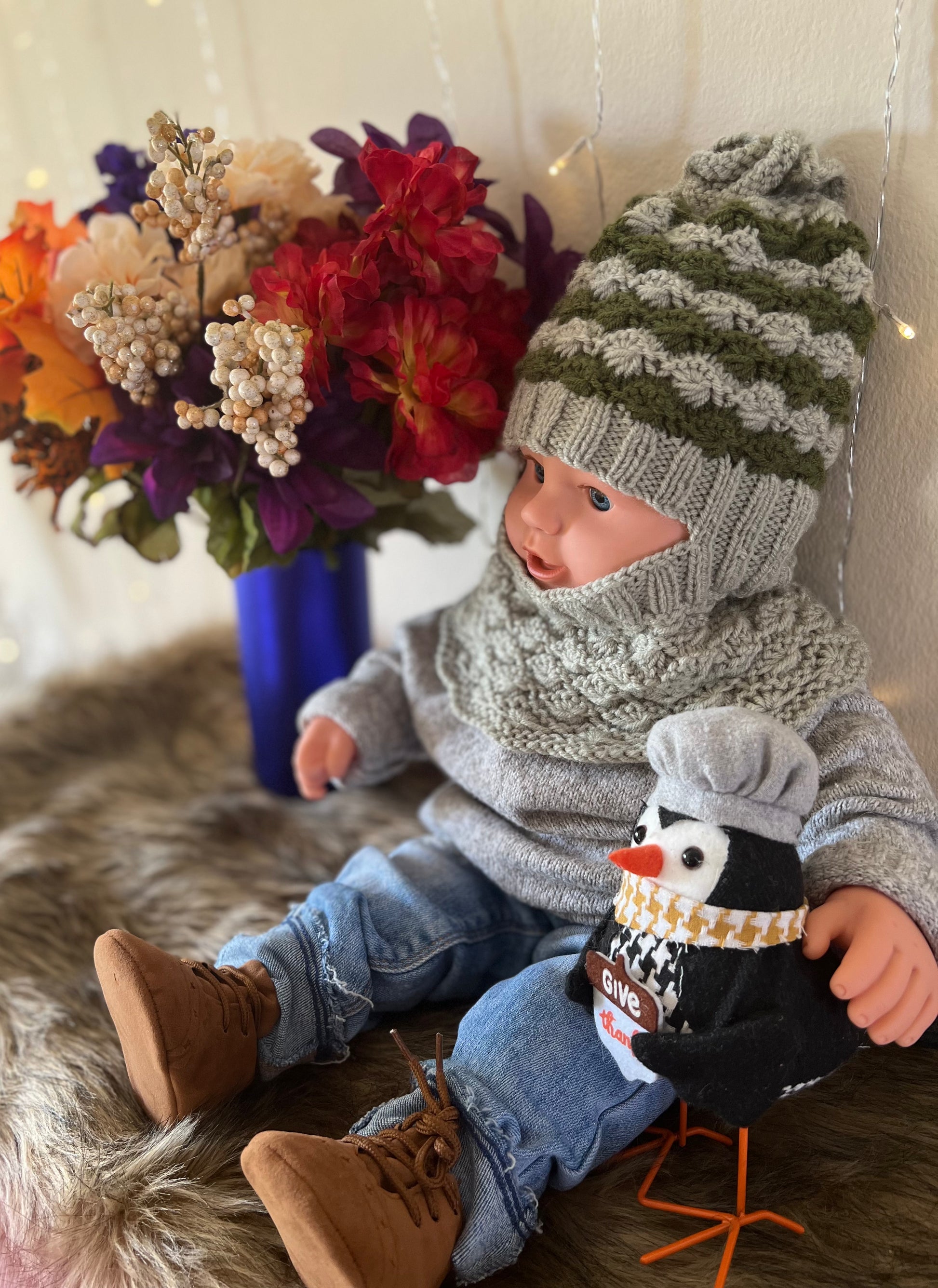 Give your baby the gift of warmth, and style with the Multi-Tone Baby's Hand-Knit Hat Neck Warmer this season!