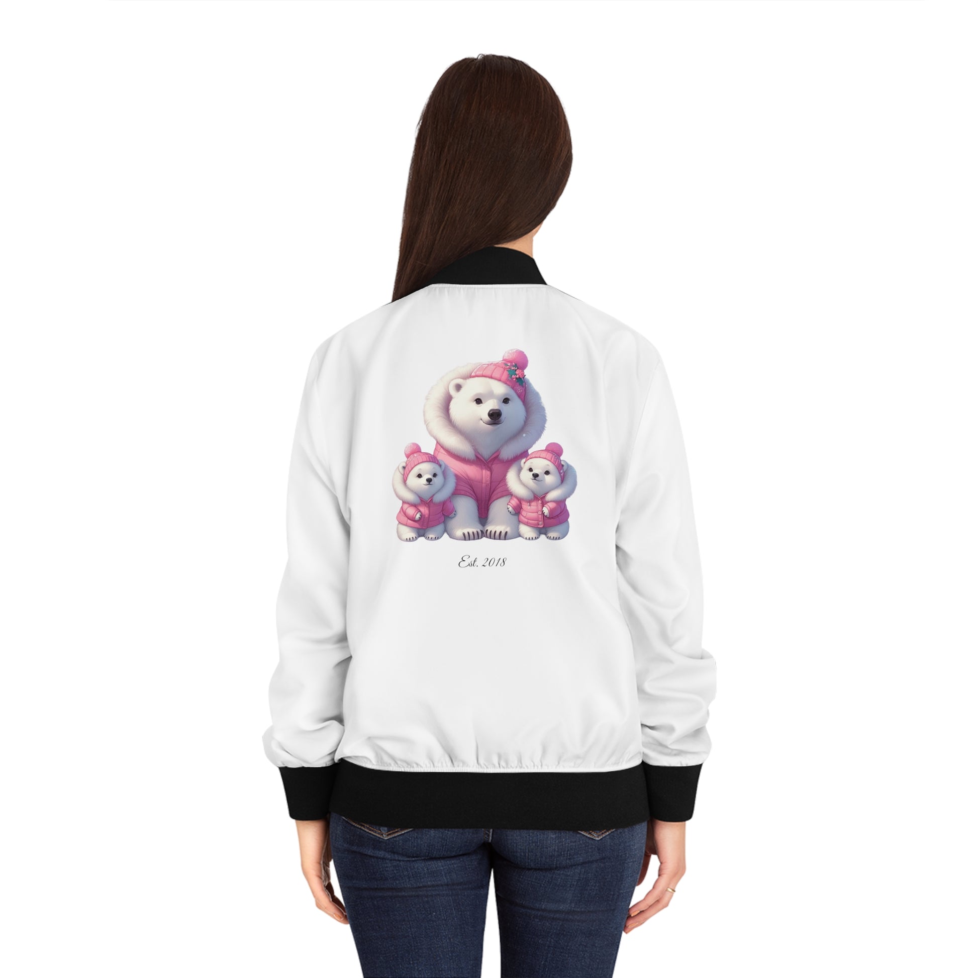 Custom Cozy Pink Polar Bear Twin Mom Bomber Jacket | Mom Jackets | Personalized Bomber Jacket | Mother's Day Gift