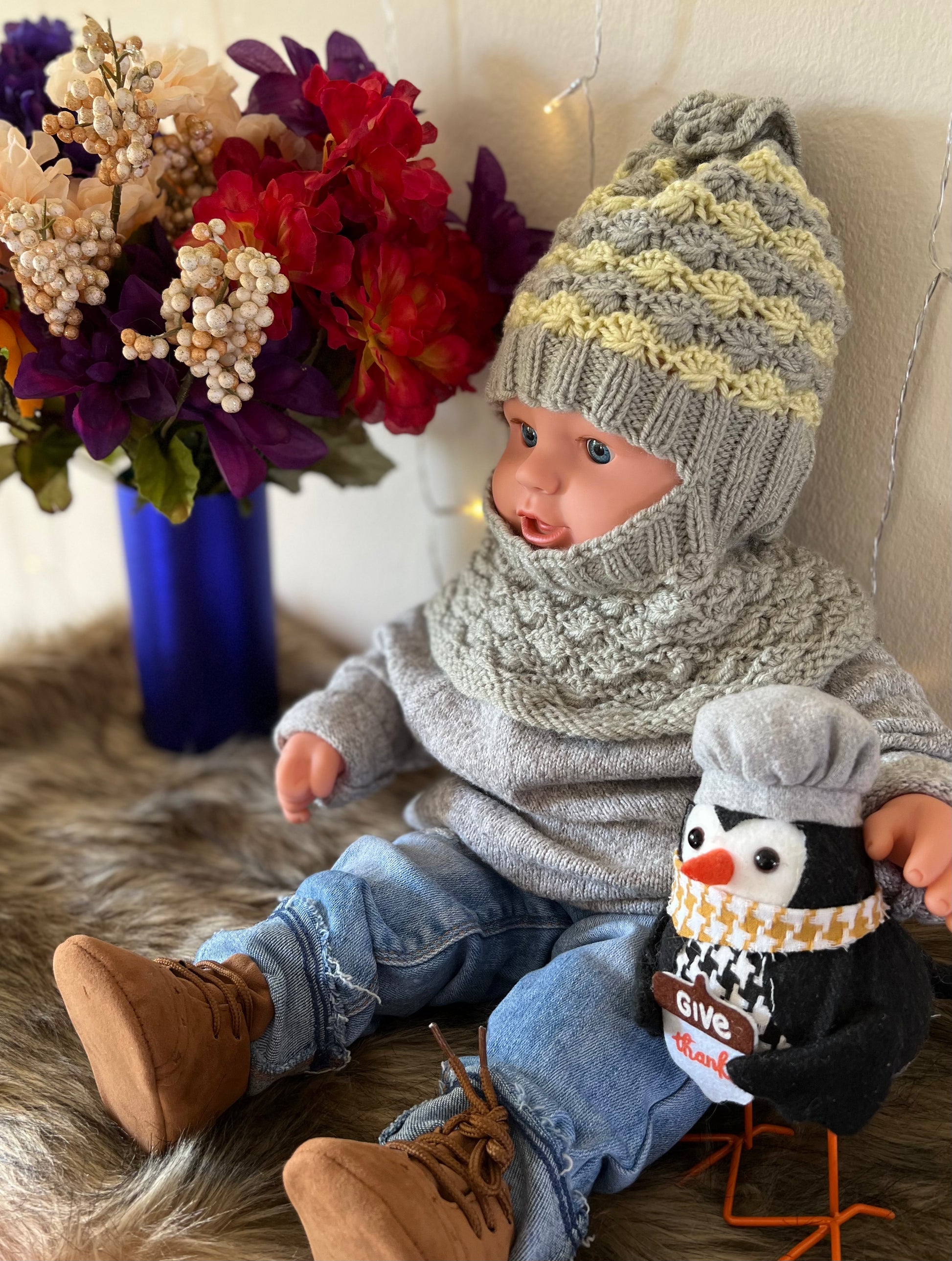 Multi-Tone Grey Baby's Hand-Knit Hat Neck Warmer (12+ Months)