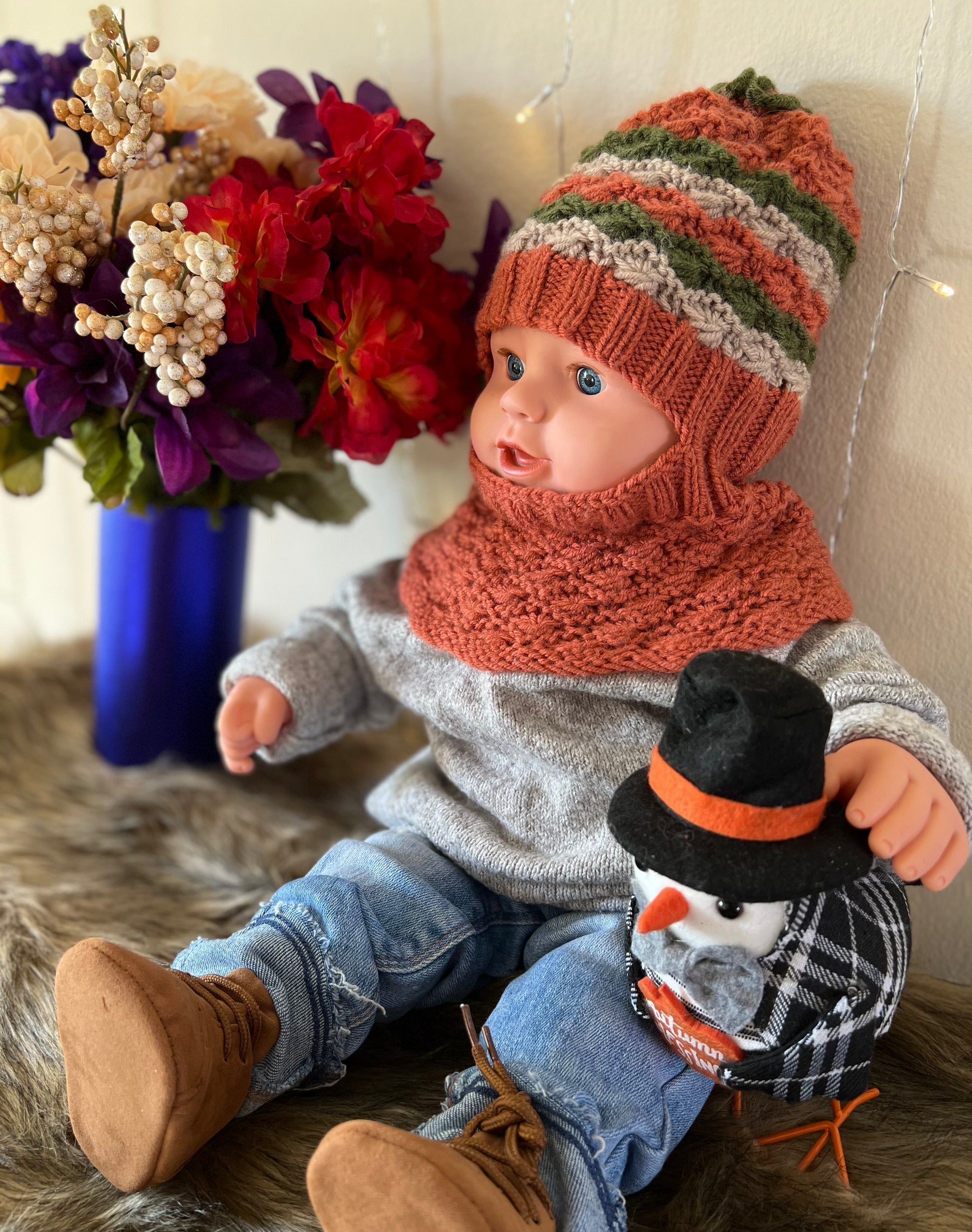 Give your baby the gift of warmth, and style with the Multi-Tone Baby's Hand-Knit Hat Neck Warmer this season!