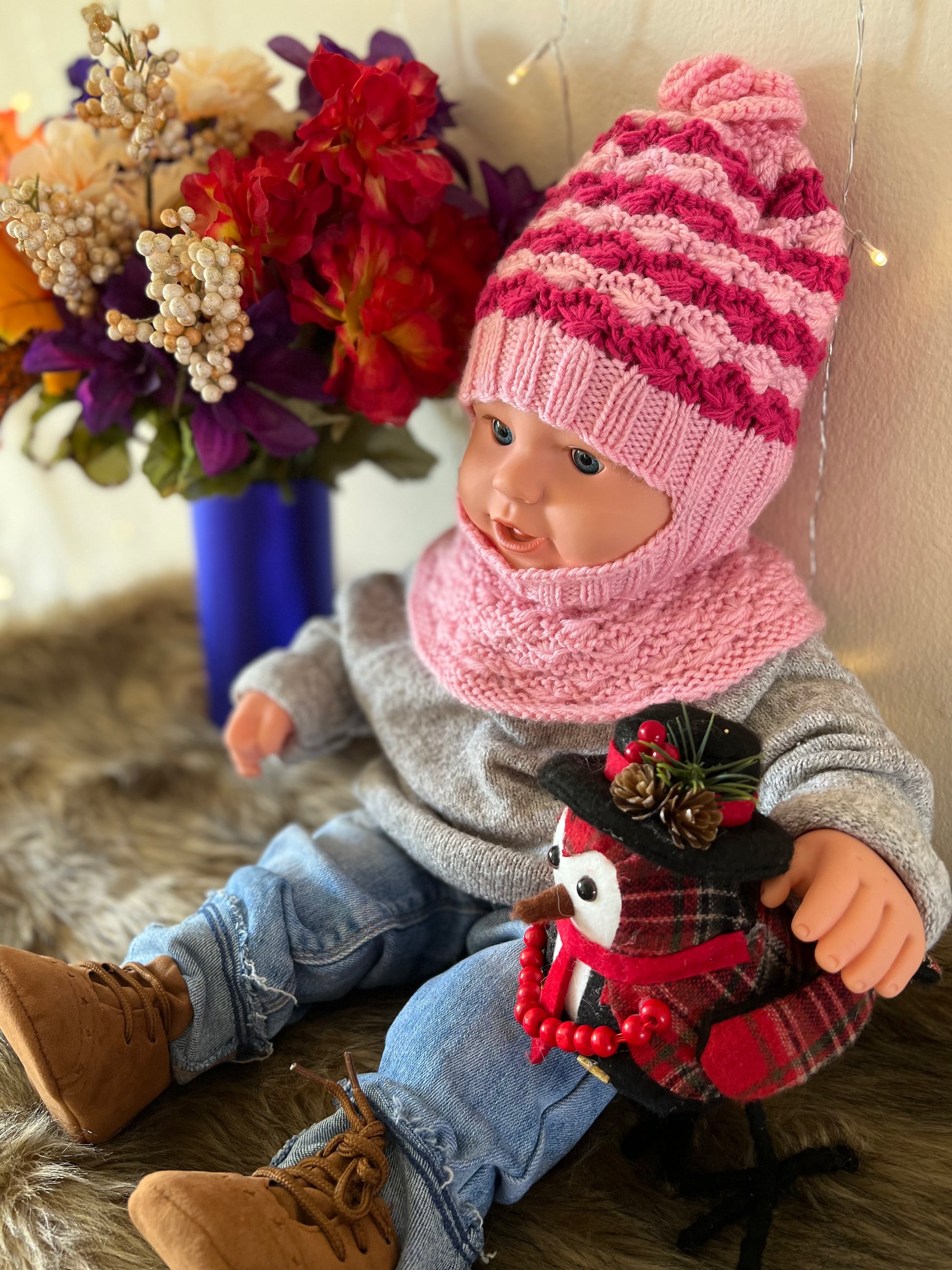 Multi-Tone Pink Baby's Hand-Knit Hat Neck Warmer (12+ Months)