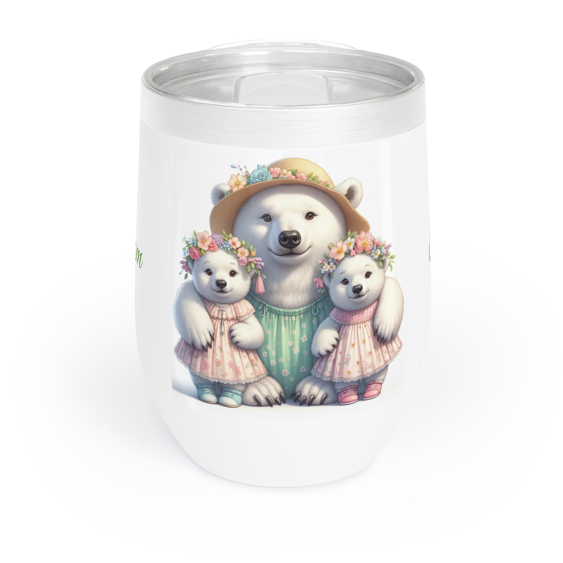 Springtime Custom Twin Mama Polar Bear & Baby Bears Wine Tumbler Chill Wine Tumbler | Personalized Text | Mother's Day Gift