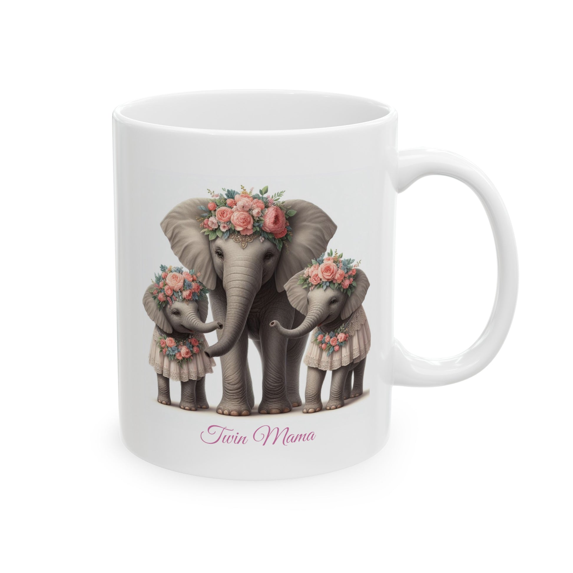 Springtime Twin Mama Elephant & Baby Elephants Ceramic Mug 11oz | Mother's Day Gift | Twin Mom Gift