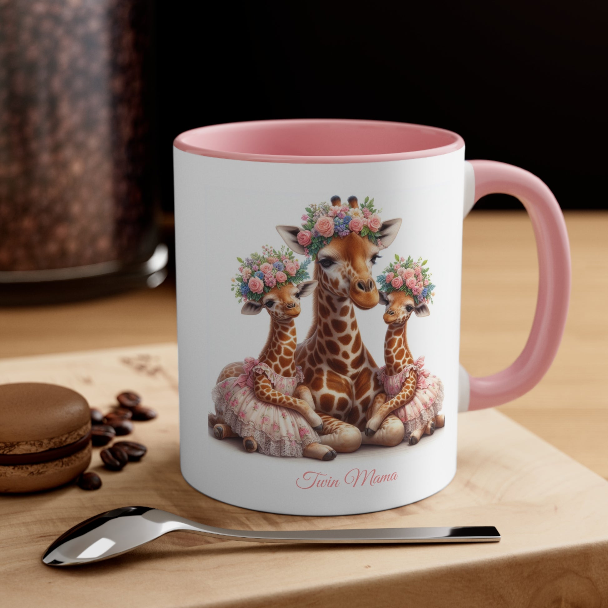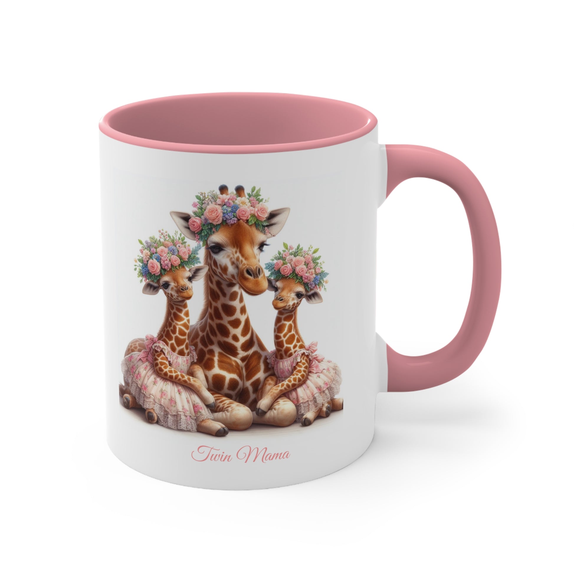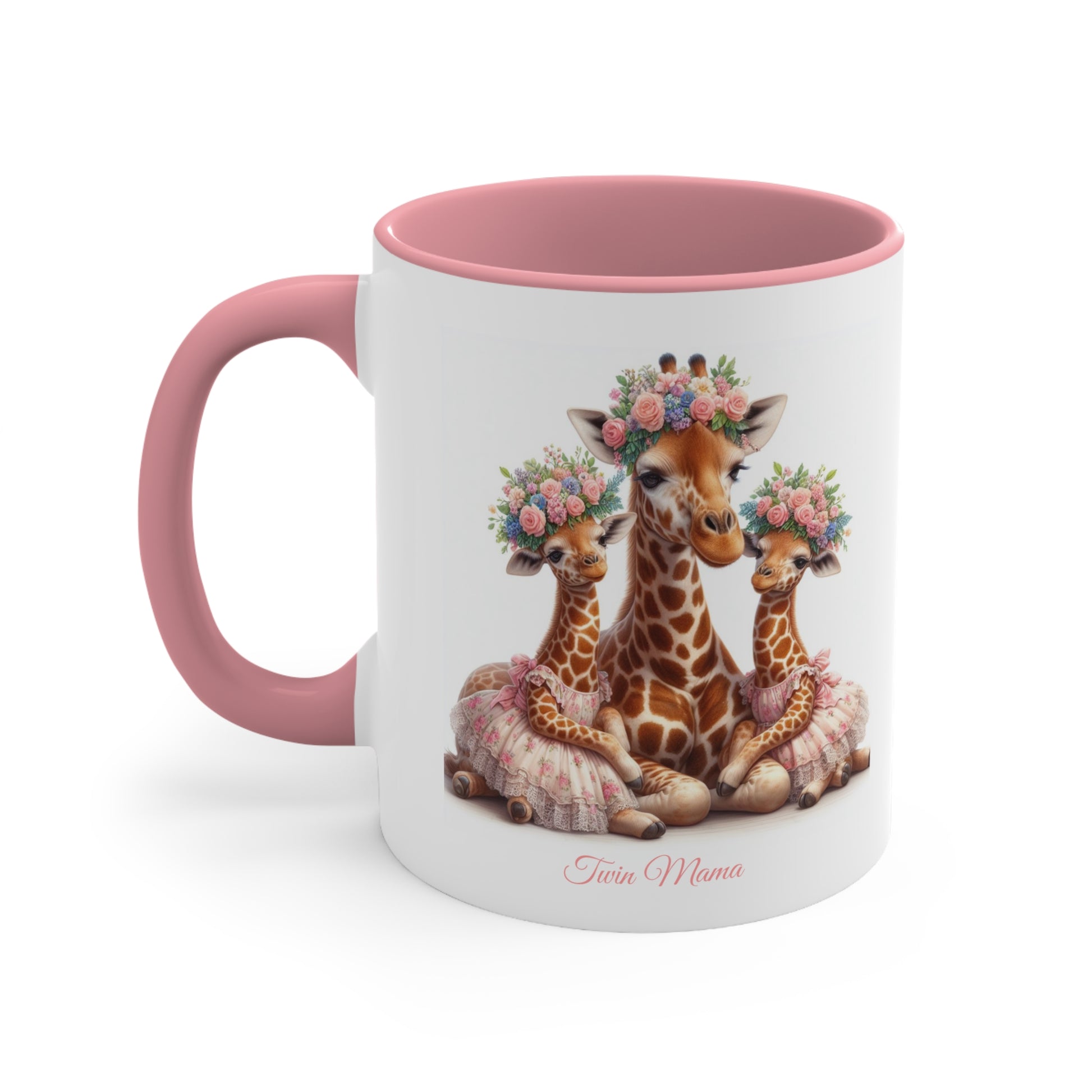 Springtime Twin Mama Giraffe & Baby Giraffes Ceramic Mug 11oz | Mother's Day Gift | Twin Mom Gift