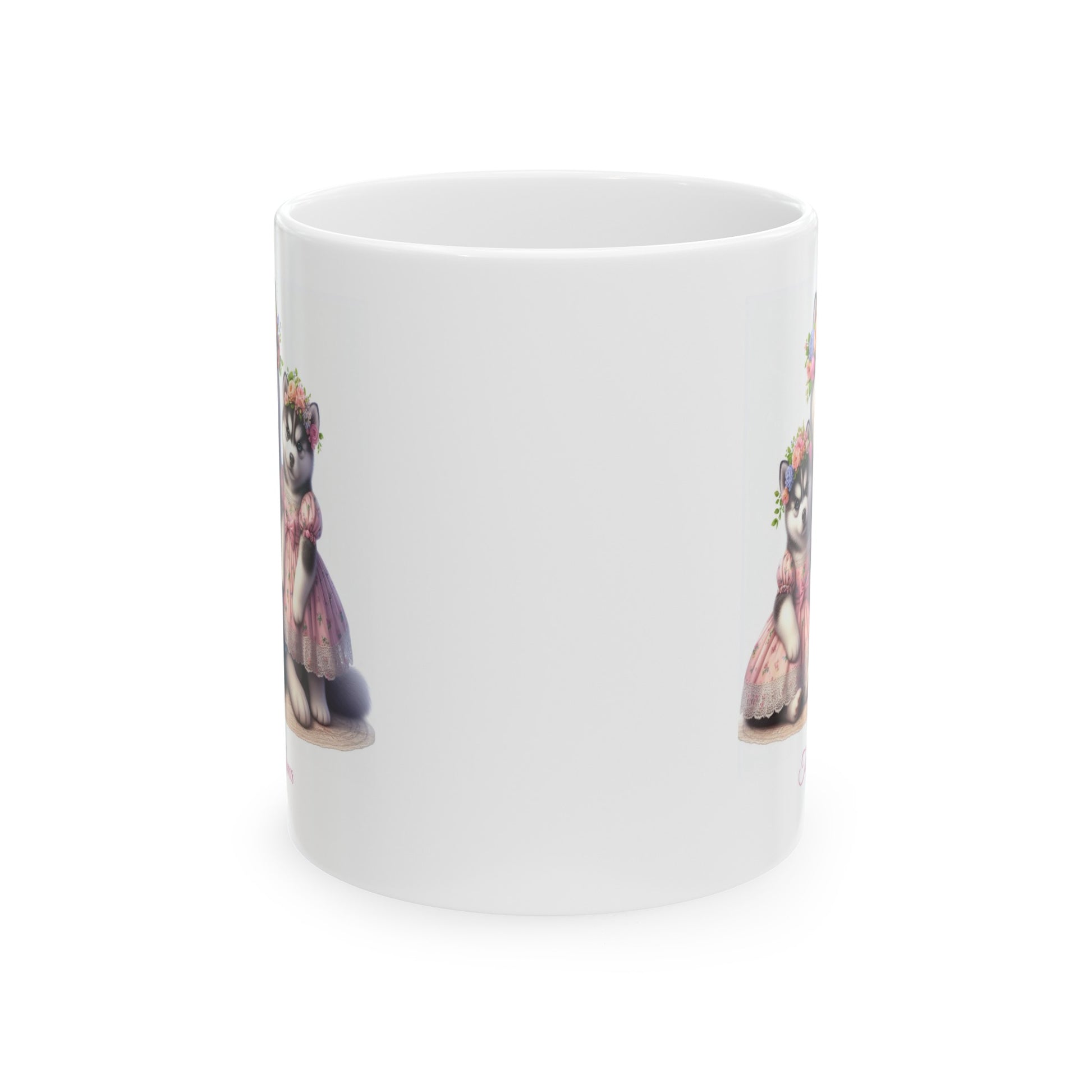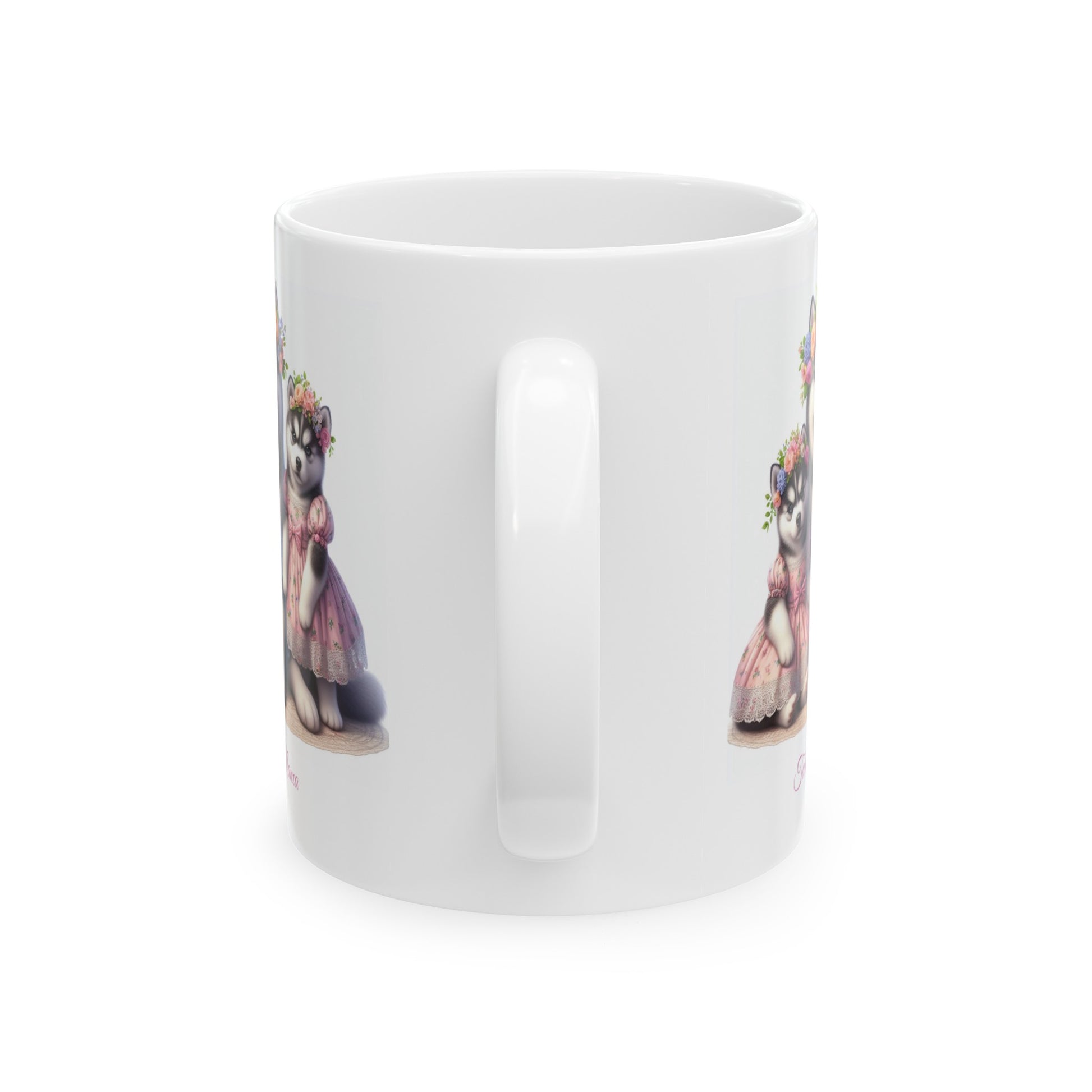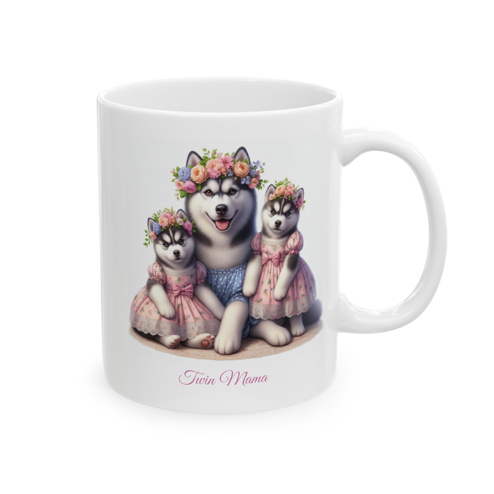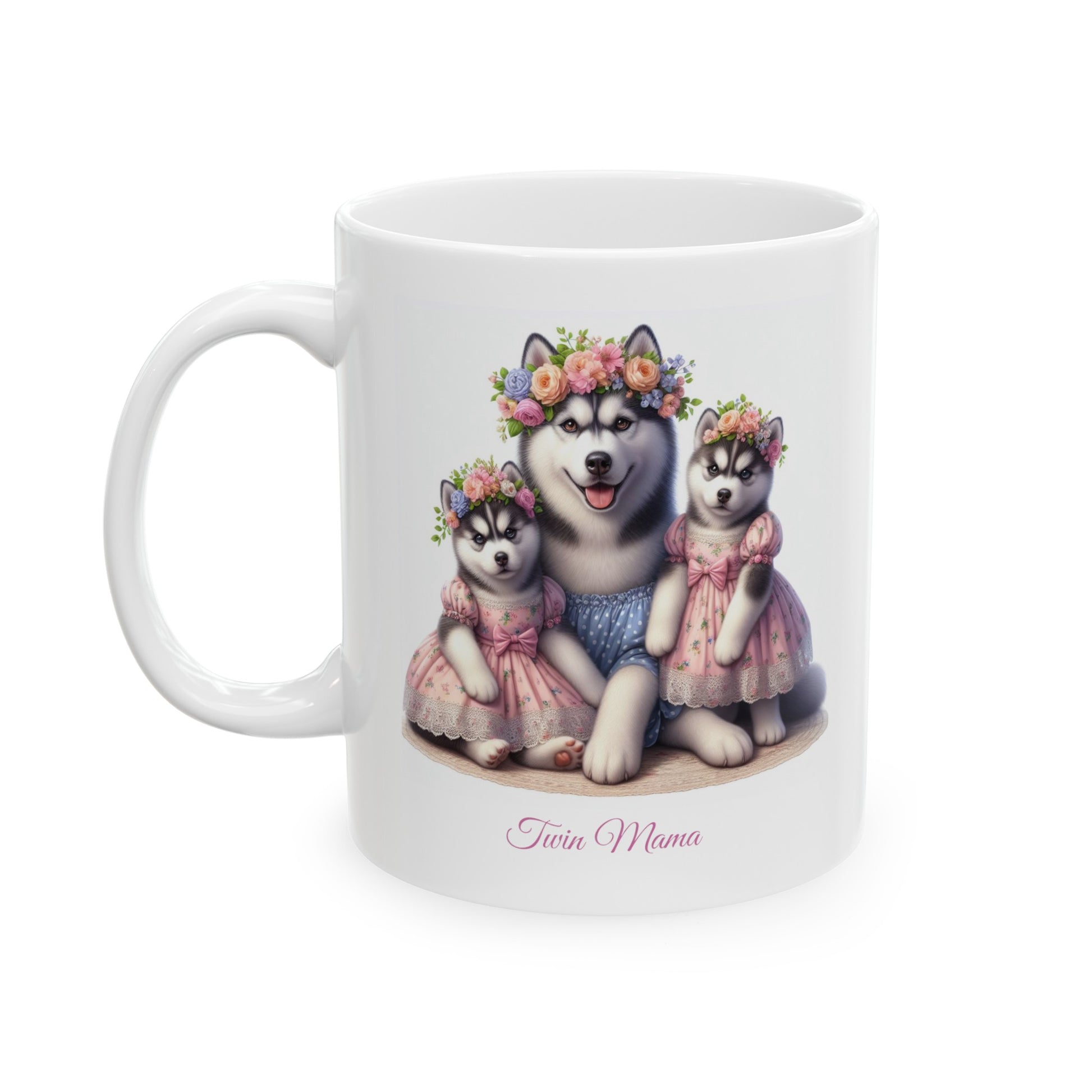 Springtime Twin Mama Husky & Baby Husky Puppies Sweet Ceramic Mug 11oz | Mother's Day Gift | Twin Mom Gift